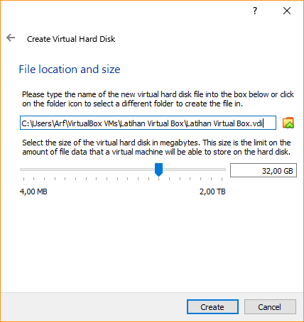 Setelah itu akan keluar tampilan seperti dibawah ini, disini kita dapat mengatur kapasitas harddisk dari Virtual Machine yang akan kita buat. Jika anda sudah menentukan kapasitas harddisk, Anda dapat meng-klik “Create” kembali.